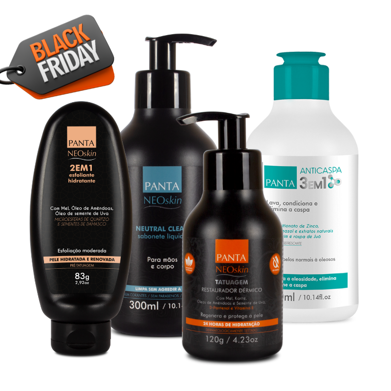 Sua pele e suas tatuagens precisam de cuidados ao longo de toda vida e o Panta NEOskin Black é o único restaurador dérmico capaz de proporcionar 24 horas de ultra hidratação comprovada.