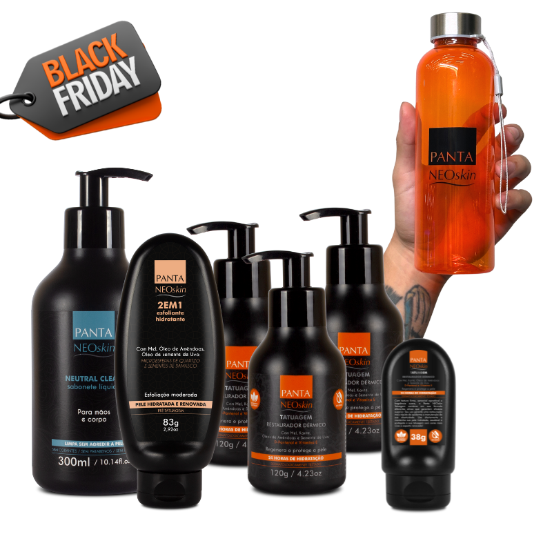 Sua pele e suas tatuagens precisam de cuidados ao longo de toda vida e o Panta NEOskin Black é o único restaurador dérmico capaz de proporcionar 24 horas de ultra hidratação comprovada.